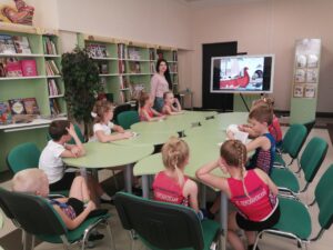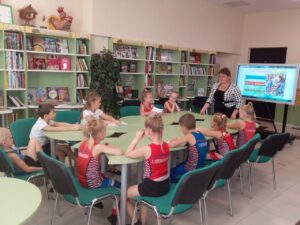 Интересным и познавательным для участников мероприятия был просмотр отрывков из мультфильма благодаря которым, дети смогли вспомнить или познакомиться с этим произведением. На литературном часе дети активно участвовали в беседе, обсуждали поступки героев, отвечали на вопросы электронной викторины.