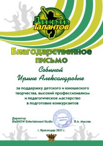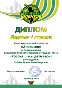 По итогам конкурса номер «Россия – мы дети твои» стал лауреатом 1 степени.