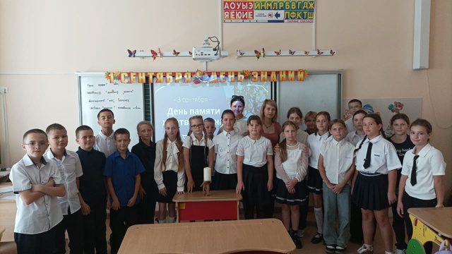 Затем школьники присоединились к акции «Свеча мира». Минутой молчания они почтили память жертв терроризма и зажгли символическую свечу, выразив тем самым солидарность и стремление жить в мире, где нет места насилию и страху. Атмосфера мероприятия объединила детей и взрослых вокруг идеи мира и взаимопонимания.