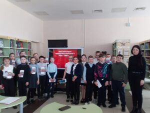 К памятному дню в библиотеке ЦКР был проведен патриотический час «Дети – юные герои» для учеников 4 класса МБОУ СОШ №61. Сотрудники библиотеки Енина Лариса и Бутенко Татьяна рассказали ребятам о мальчишках и девчонках, которые за подвиги, совершённые в годы Великой Отечественной войны, были удостоены самой высокой награды Родины — звания Героя Советского Союза. Юные читатели с интересом слушали рассказ о своих ровесниках чей подвиг навеки останется в памяти поколений.