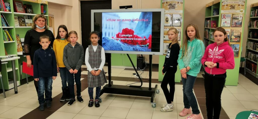 3 декабря 2020 года в библиотеке МБУ «ЦКР» прошёл час памяти ко Дню неизвестного солдата и показана презентация «Неизвестный солдат. Имя твоё неизвестно – подвиг твой бессмертен» юным читателям библиотеки. Библиотекарь Енина Л.Г. рассказала об истории возникновения даты, рассказала о бессмертном подвиге советских людей и о тех, кто не вернулся с войны, ценой своей жизни защищая своё Отечество. В ходе презентации были показаны города, в которых установлены памятники Неизвестному солдату. Память павших, почтили минутой молчания у макета памятника «Журавли».