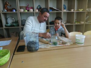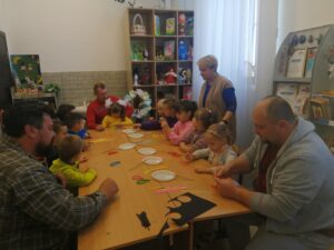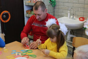 Наши папочки имели возможность вместе со своими детьми побывать на мастер классах наших преподавателей, где с удовольствием погружались в «планету детства» и изготовляли поделки из разных материалов, рисовали необычным способом и занимались самым любимым занятие из своего детсва — делали самолетики из бумаги и запускали их.  А дальше для наших папочек звучали музыкальные подарки от наших маленьких звездочек из группы «Мастерская эстрадного вокала». Папы наверняка по достоинству оценили старания и внимание своих детей и всех участников встречи.
