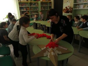 Руководитель кружка Декоративно-прикладного искусства Яровенко Т.М. провела для присутствующих мастер-класс: «Звезда из бумажных салфеток».