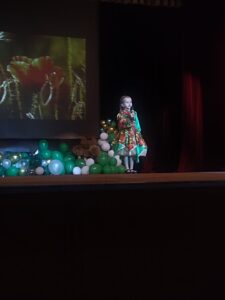 Солистка детского ансамбля ЦКР «Смородинка» Полина Чернова, рук. Анастасия Савченко, поздравила выпускников и исполнила летнюю песню «Маков цвет».