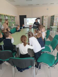 В ходе познавательной игры ребята ответили на вопросы викторины «Угадай животное», приняли участие в игре «Большие и маленькие» . Ребята с большим вниманием слушали рассказ библиотекарей о редких и исчезающих видах животных, занесённых в Красную книгу.
