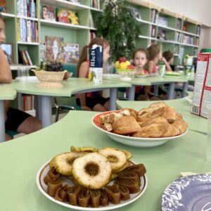 Гости праздника были разных возрастов, но, несмотря на это, с одинаковым интересом и азартом выполняли задания и участвовали в конкурсах. Вспомнили сказки, где упоминаются яблони и яблоки, устроили яблочные предсказания на предстоящий учебный год, сделали яблочную гимнастику для глаз, щедро делились друг с другом комплиментами, передавая яблоко. Особенно всем понравилось озвучивать Веселое Яблоко в кукольном театре, разными голосами и знакомить присутствующих с интересными фактами об этом фрукте.